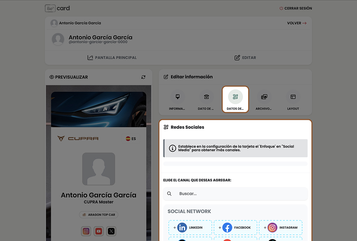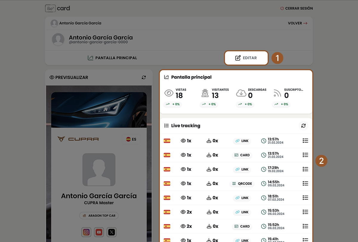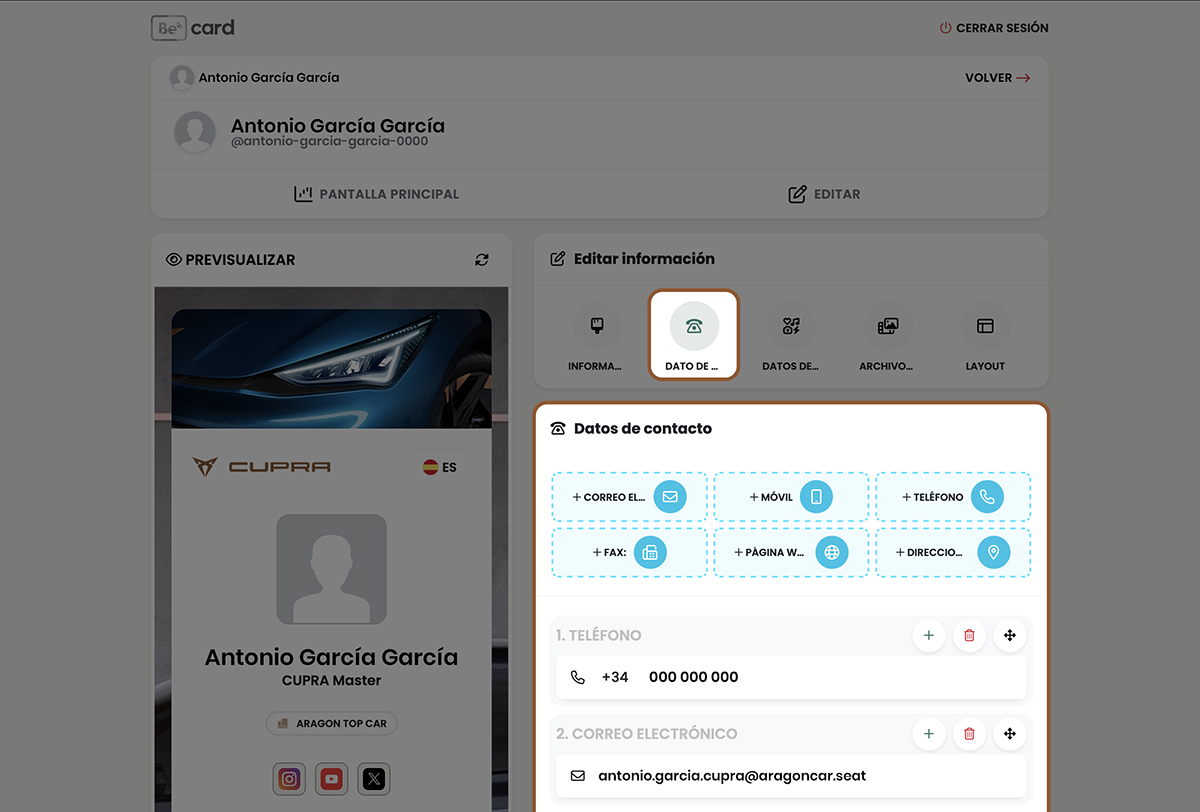 Las presentes condiciones de uso (en adelante, "Condiciones de uso") regulan el acceso y el uso del Portal web solo por los concesionarios de la red oficial de concesionarios de SEAT y CUPRA (en adelante, los "Usuarios" o los "Concesionarios"), que actuarán a través de su personal de ventas designado por cada uno de los Concesionarios para este fin (en adelante, el "Personal de ventas"), y se complementarán con cualquier otro texto legal aplicable que regule las funcionalidades, servicios, aplicaciones, plataformas u otros medios necesarios para el uso de Portal web o incluidos en él.
